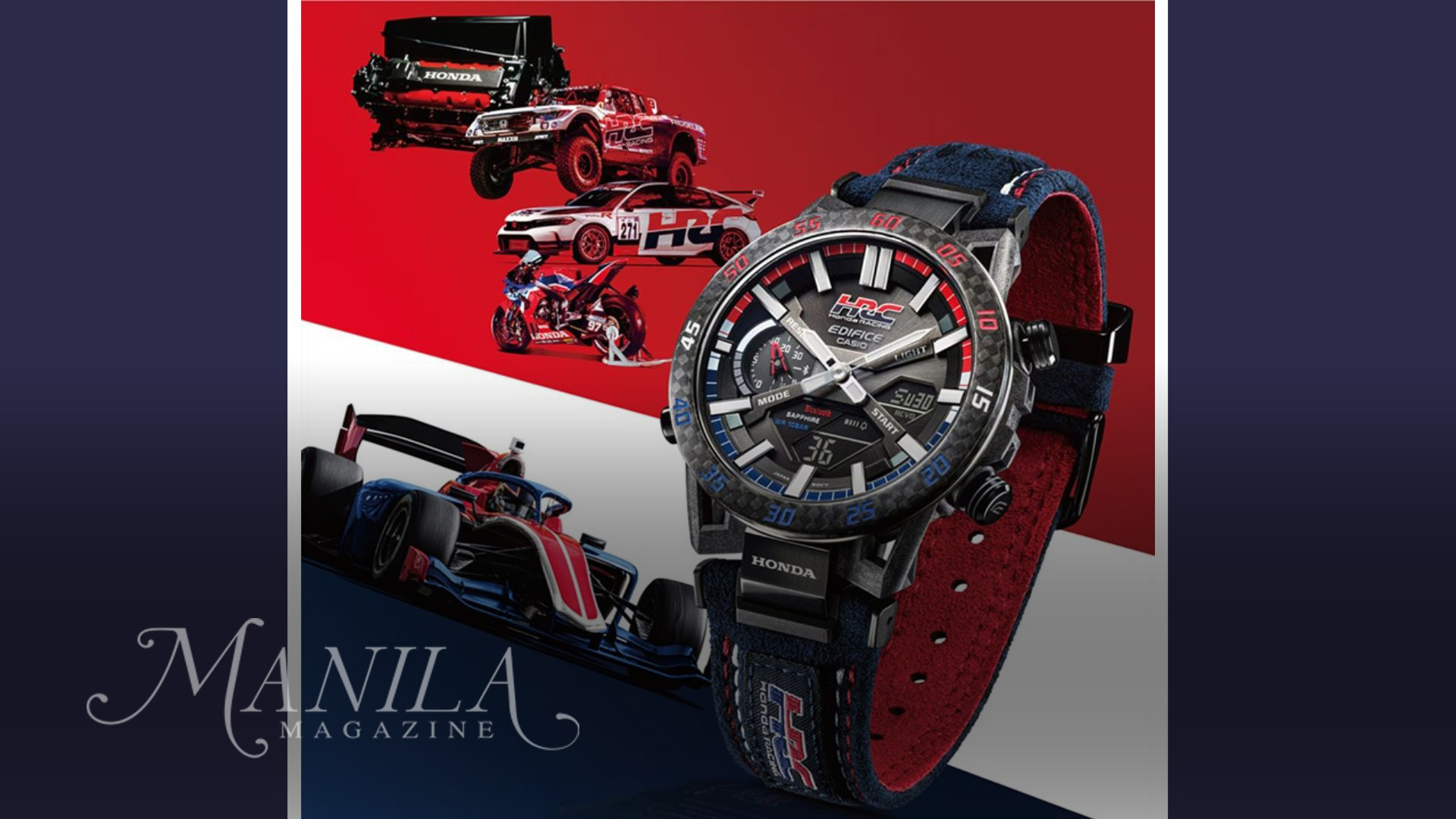 As the one who’s always up early, engine humming and adrenaline rushing, the Honda Racing Collaboration Model ECB-2000HR-1A is the perfect match. This timepiece pays tribute to the victories on the world’s greatest racetracks with an original tricolor design. Its carbon materials for the bezel and carbon fiber-reinforced resin for the case feature a unique design inspired by the four-arm suspension used in race cars.